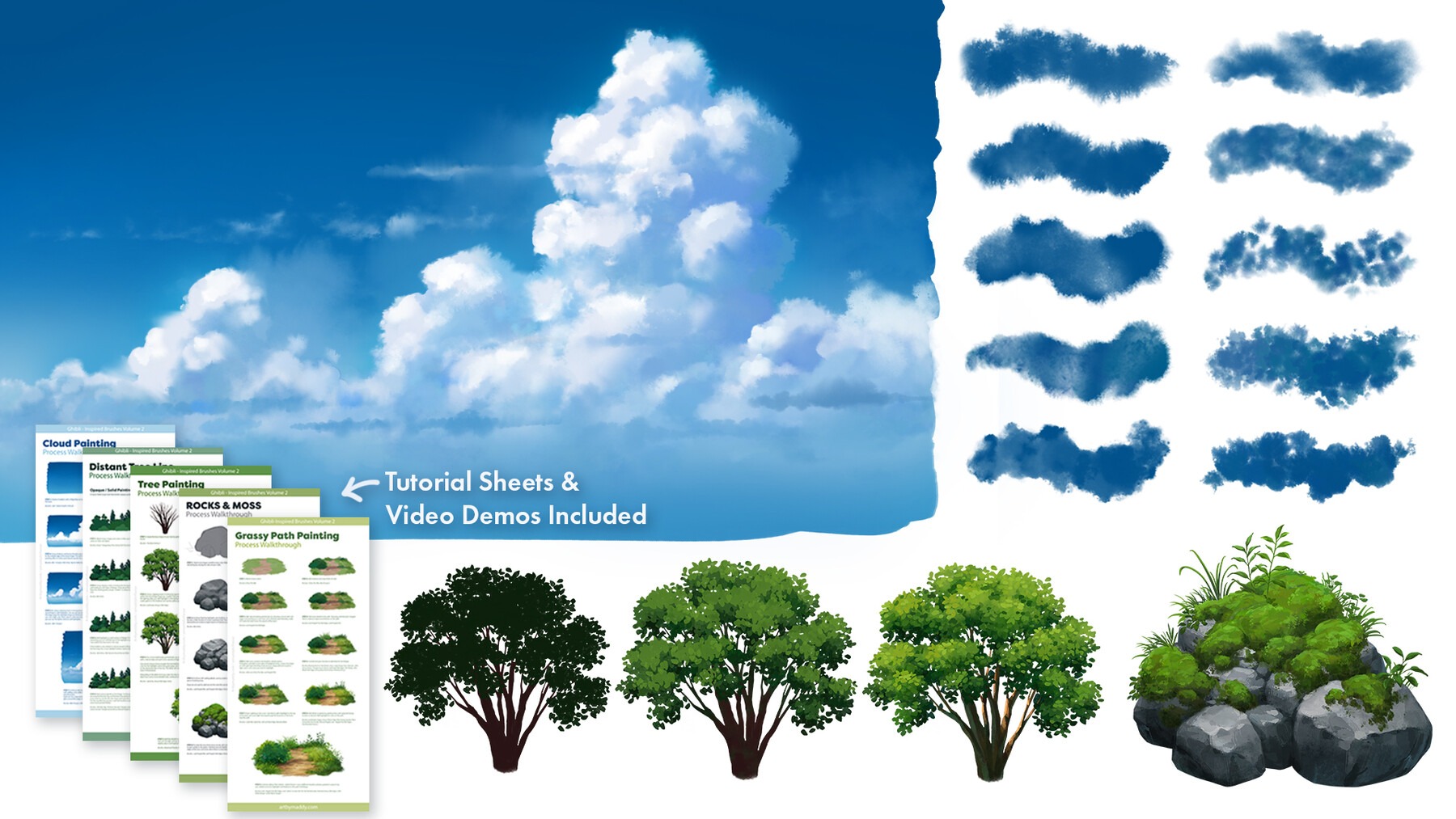 - Tutorial Sheets teaching you how to get the most of out the Ghibli Inspired Brushes 2